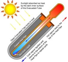 The air is evacuated from the space between the two glass tubes to form a vacuumed space, which eliminates conductive and convective heat loss. Evacuated tubes can still work efficiently even on cloudy days, because it is able to absorb the energy from infrared rays passed through clouds.
